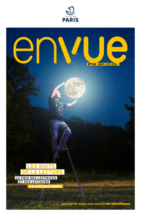Le magazine En Vue est le programme des bibliothèques de la Ville de Paris. Diffusé à 33 000 exemplaires dans plus de 200 lieux parisiens et franciliens, il est publié 5 fois par an. Pour plus d'informations, contactez communication@bibliocite.fr