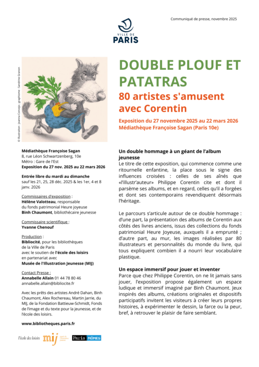 Exposition DOUBLE PLOUF ET PATATRAS – 80 artistes s’amusent avec Corentin